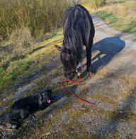 Zum Glück ist unser Grundstück mit fast 6000Quadratmeter so groß, daß Spike etwas Auslauf hat.